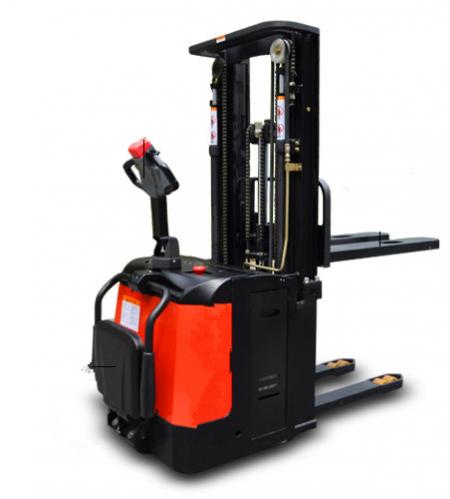 2,電動托盤堆垛叉車:該產品承載能力為 1.0~1.6噸,作業通道寬度一般為2.3~2.8米,在結構上比電動托盤搬運叉車多了門架,貨叉提升高度一般在4.8米內,主要用于倉庫內的貨物堆垛及裝卸;